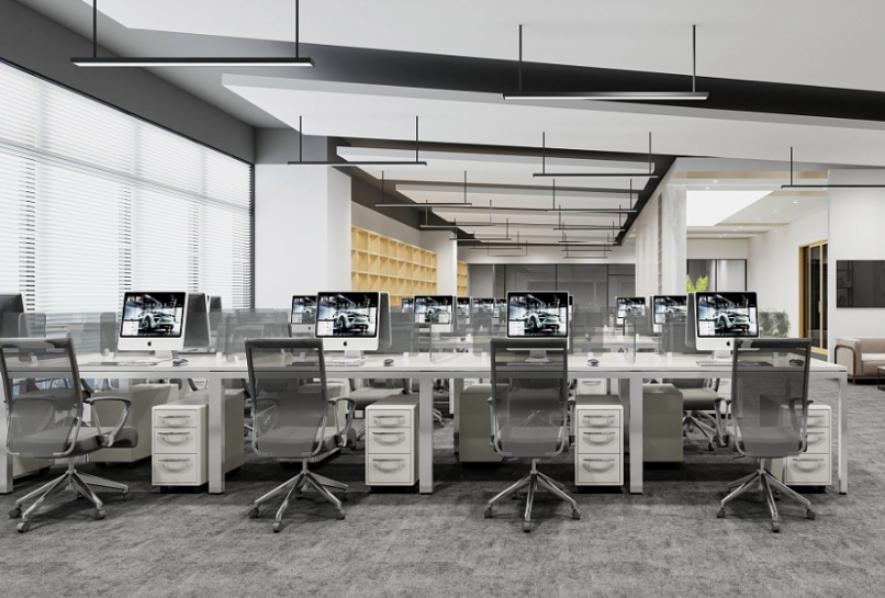 簡(jiǎn)潔的環(huán)境減少干擾,開(kāi)放式布局促進(jìn)溝通,符合現(xiàn)代辦公的協(xié)作需求。